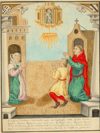 Plotseling scheen er een fel licht op het gezicht van Symon. De bedelaar zei tegen zijn stadsgenoot: ‘O myn uytverkooren live vriendt en siedt dy niet den Hemel open?' Samen keken ze naar boven, in de richting van het toenmalige galgenveld... Daar zagen ze in een visioen een gouden kerk, gewijd aan Maria.
