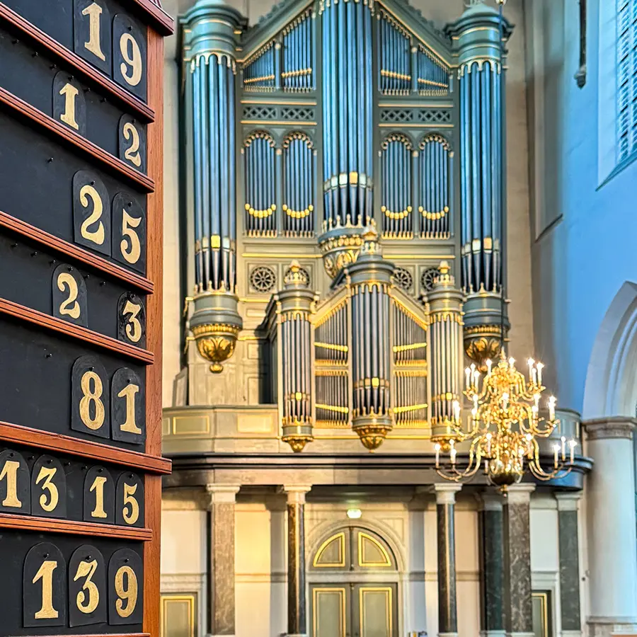 Vier monumentale orgels, verdeeld over twee kerken. Wie hier een concert bezoekt, hoort instrumenten die generaties Delftenaren hebben begeleid en die nog elke zondag klinken.