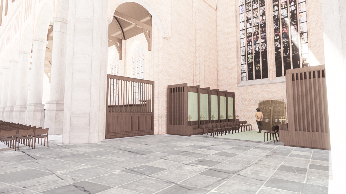 Hieronder vind je meer informatie over de verbouwingen in de Nieuwe Kerk, de sfeerimpressies van wat er gerealiseerd zal worden. Begin oktober '25 zijn de werkzaamheden begonnen en deze zullen in drie fasen worden gerealiseerd.
