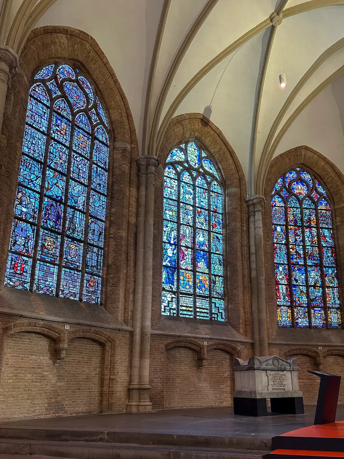 Naast de (praal)graven en andere bezienswaardigheden eisen ook de gebrandschilderde ramen van de Nieuwe Kerk jouw aandacht op.