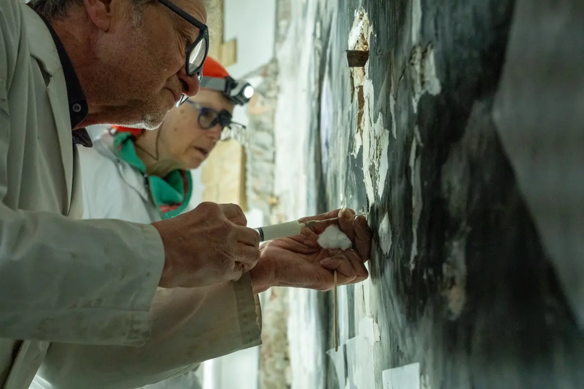 Afgelopen dagen zijn in de Oude Kerk van Delft de conserveringswerkzaamheden begonnen aan de bijzondere muurschildering van Piet Hein. Deze unieke schildering, die vorig jaar werd ontdekt tijdens de restauratie van het grafmonument, bleek in slechte staat te verkeren. Om verdere achteruitgang te voorkomen, is besloten met de meest noodzakelijke werkzaamheden te beginnen.