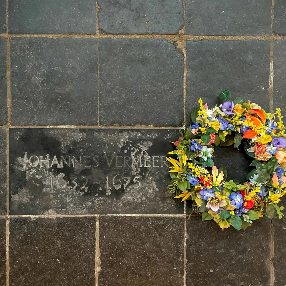 De wereldberoemde schilder Johannes Vermeer stierf onbekend en onbemind. Tot 2007 was er slechts een kleine, onopvallende steen die herinnerde aan jouw bijzetting in het familiegraf van jouw schoonmoeder. Toen kwam er een nieuwe, grotere gedenksteen, waarmee Johannes Vermeer weer iets van de erkenning krijgt die hij verdient.