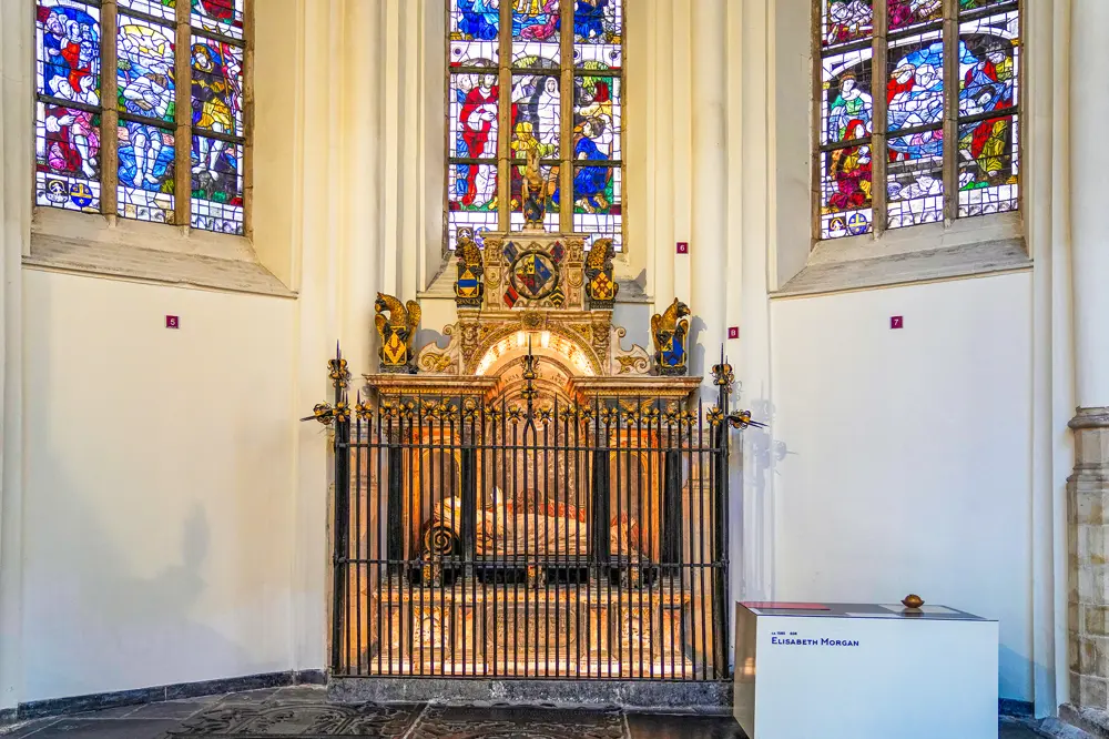 De relatief onbekende Elisabeth Morgan - dochter van een van de vertrouwelingen van Willem van Oranje - heeft in de Oude Kerk een indrukwekkend grafmonument. Haar man, ridder Charles Morgan, liet het ontwerpen door de Engelse beeldhouwer Nicholas Stone.